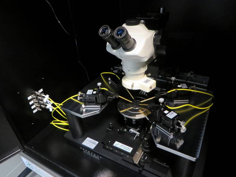 Station semiautomatique de test sous pointes Elite 300 (plaque jusqu’à 300mm de diamètre) : mesures à très faibles courants (1 fA) et capacités (fF).